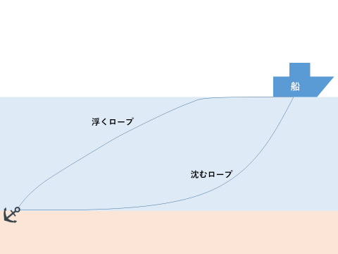 浮くロープ(低比重)と沈むロープ(高比重)を改めて図にしました。