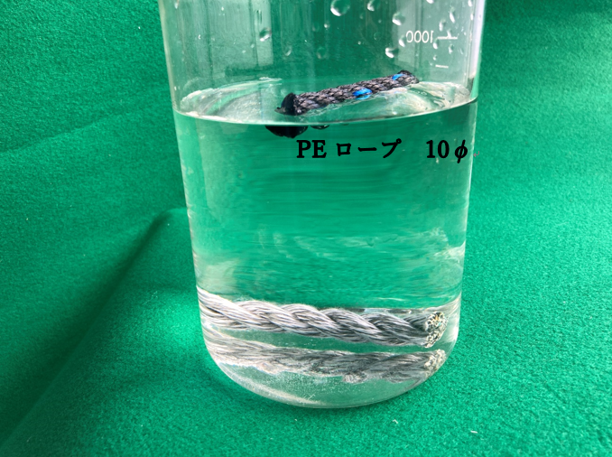 では、このPEロープを海水にいれるとどうなるのでしょうか?