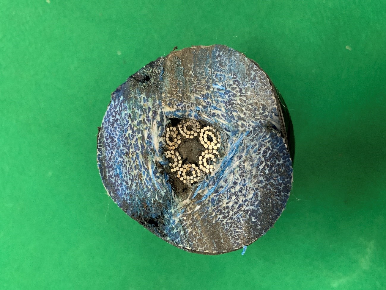 例えばタフライン(ポリピロピレン)CBRロープ35(14)mmではロープ直径は35mm、ロープの中心にワイヤーロープ14mmが入ります。