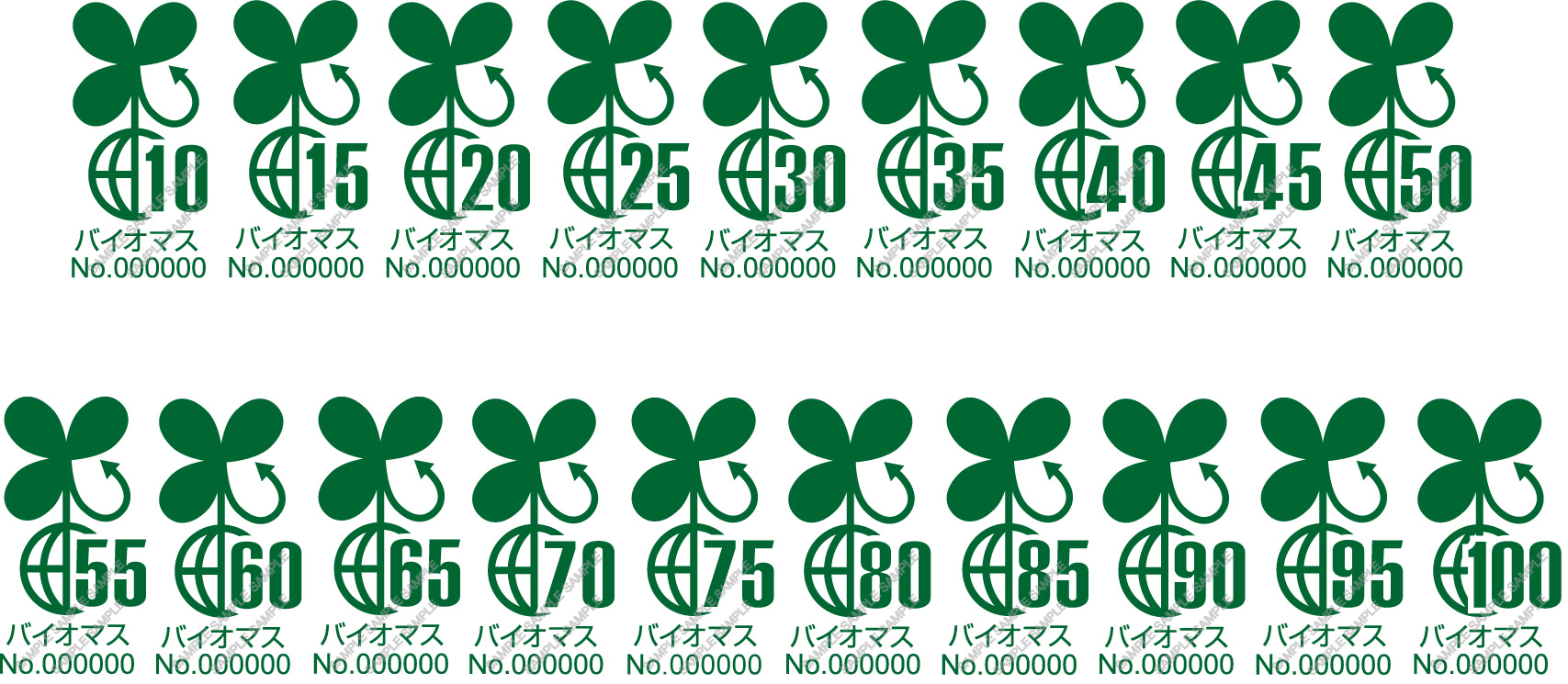 バイオマスマークは認定に応じて、バイオマスの割合が10%以上、5%刻みで表示が可能です。