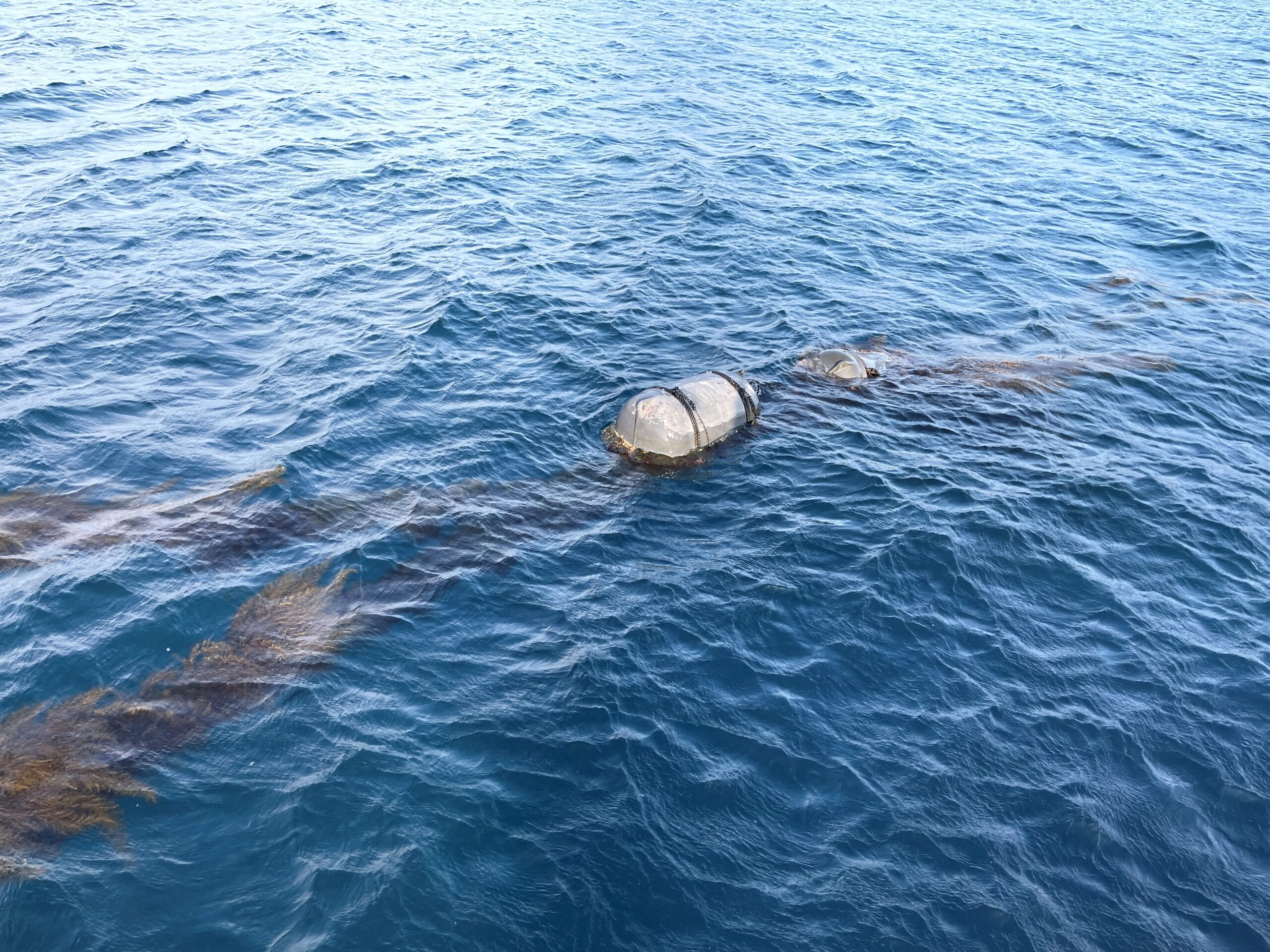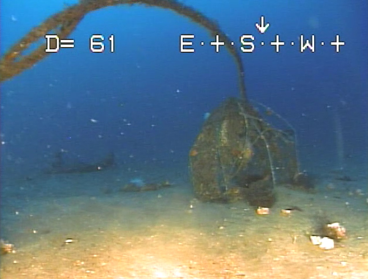 こちらの調査では、養殖場の海底に沈んでいたロープと籠が発見されました。